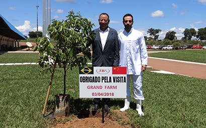 大莊園董事長陳希濱先生回訪巴西JBS,并和巴西JBS高層國際出口總監(jiān)Rogerio Bonato-羅杰里奧 博納多一起種下寓意長遠合作與友誼之樹。